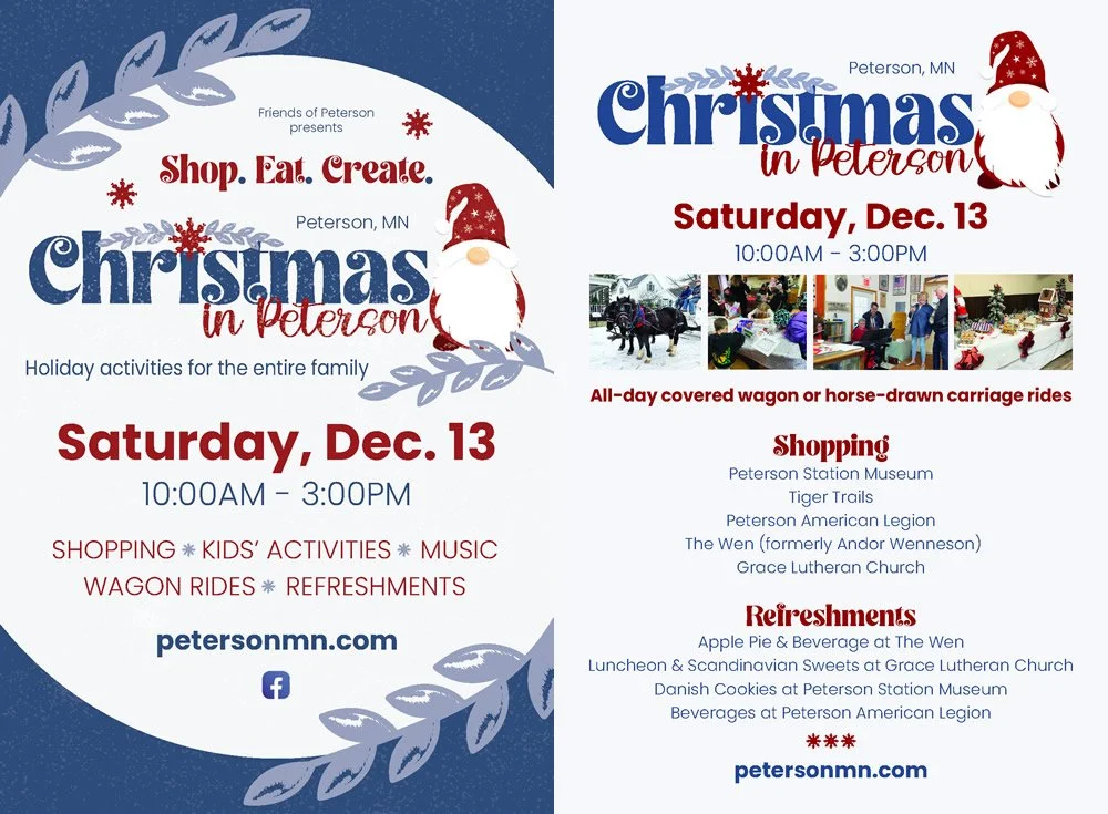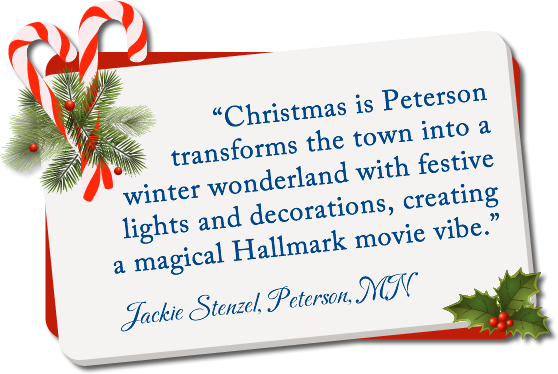Step into the heartwarming holiday scene of Christmas in Peterson, where Scandinavian traditions sparkle in Minnesota's winter. Enjoy caroling, Santa hayrides, and cozy beverages amidst festive lights and decorations. Discover unique gifts and treats from local artisans, and capture memorable moments from the Peterson Museum to the whimsical 'bandstand forest.'